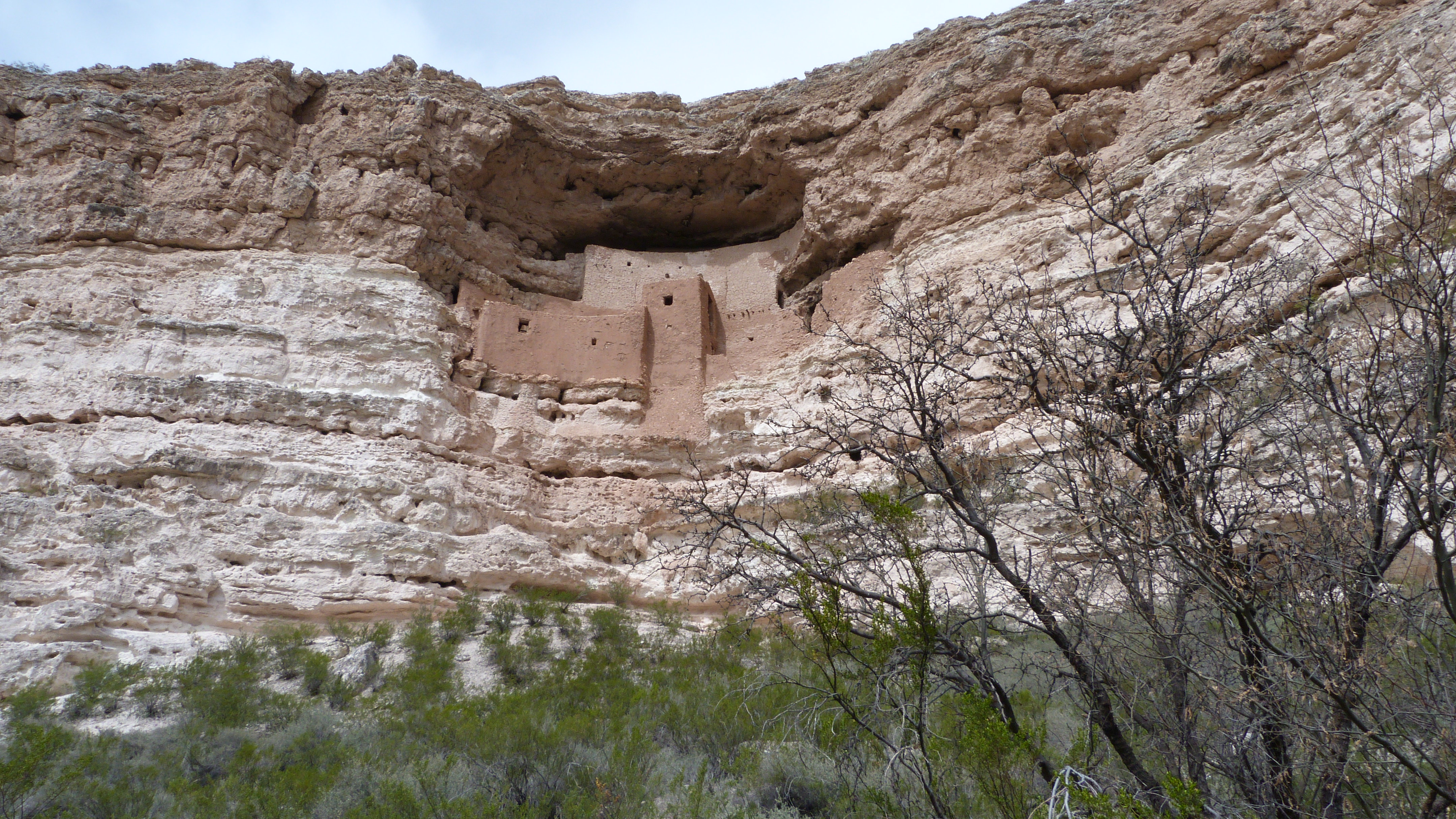 During the week of March Break (in Canada) we were thrilled to have Jim’s daughter visit us, but with bicycles and the motorcycle being our only means of transportation, we thought our time would be spent mainly within the resort. However, we gratefully accepted the generous offer of our great neighbour to lend us her car so Karen could accompany us on the completion of a couple more things on our Bucket List. One of these was a drive towards Sedona to see the cliff dwellings in Verde Valley, the most obvious structure being Montezuma’s Castle, part of a larger community. We saw remnants of another eight to ten pueblo rooms. Because of the bountiful resources small farming communities developed in the area between the years 600 to 1100 and the natural formations of the rocky hills lent themselves well to the creation of safe shelter.