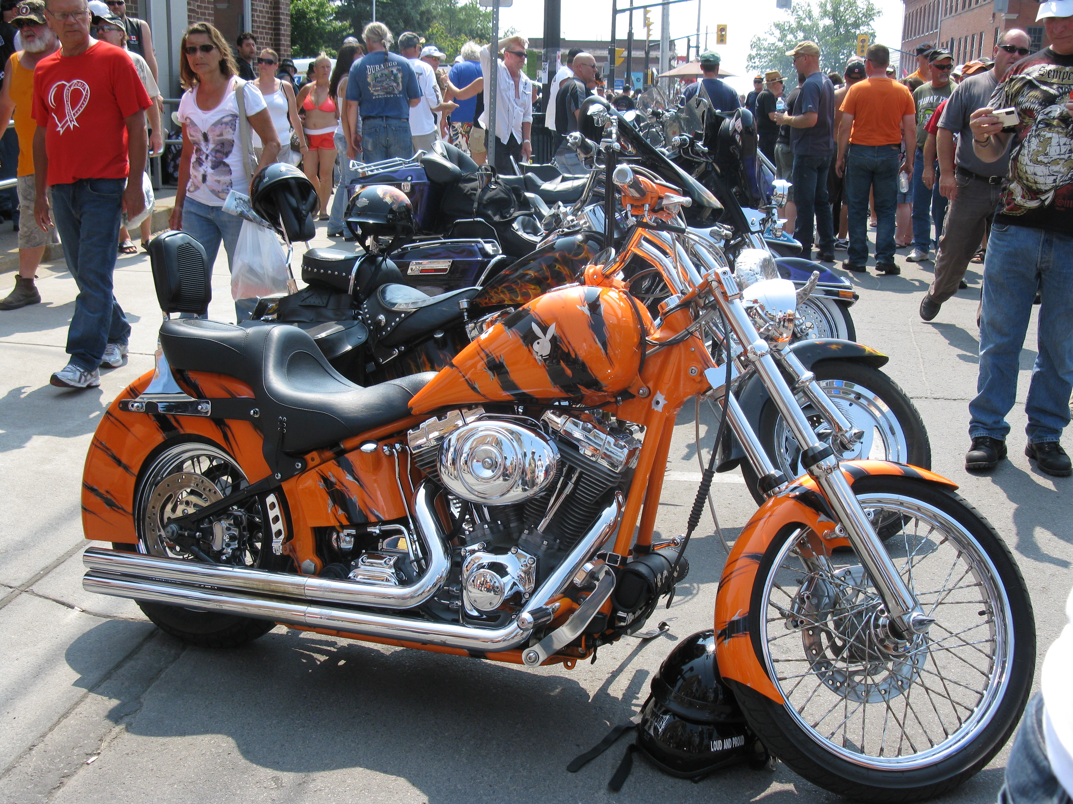 On Saturday the sun was shining again and the temperatures perfect for a ride on the motorcycle to Campbellford for another annual event, Chrome on the Canal. We found a place to park our bike, and then began the mile or more stroll along the Trent Canal banks to exclaim over the interesting variety of bikes and cars. They ranged from antique to classic, to the latest models. Some were “chopped” (modified); some were restored to original; some were just as they’d been found abandoned in a field or garage.