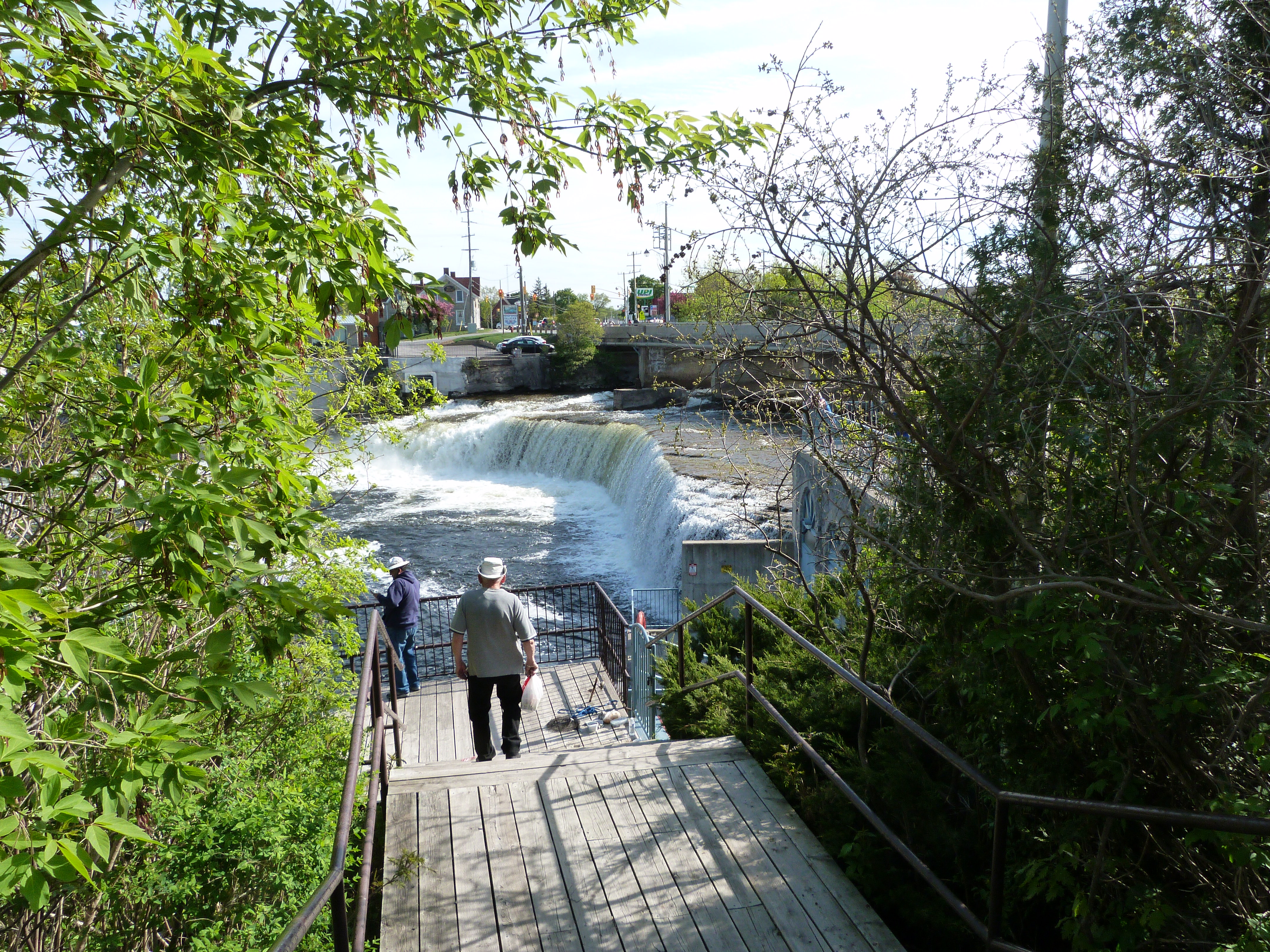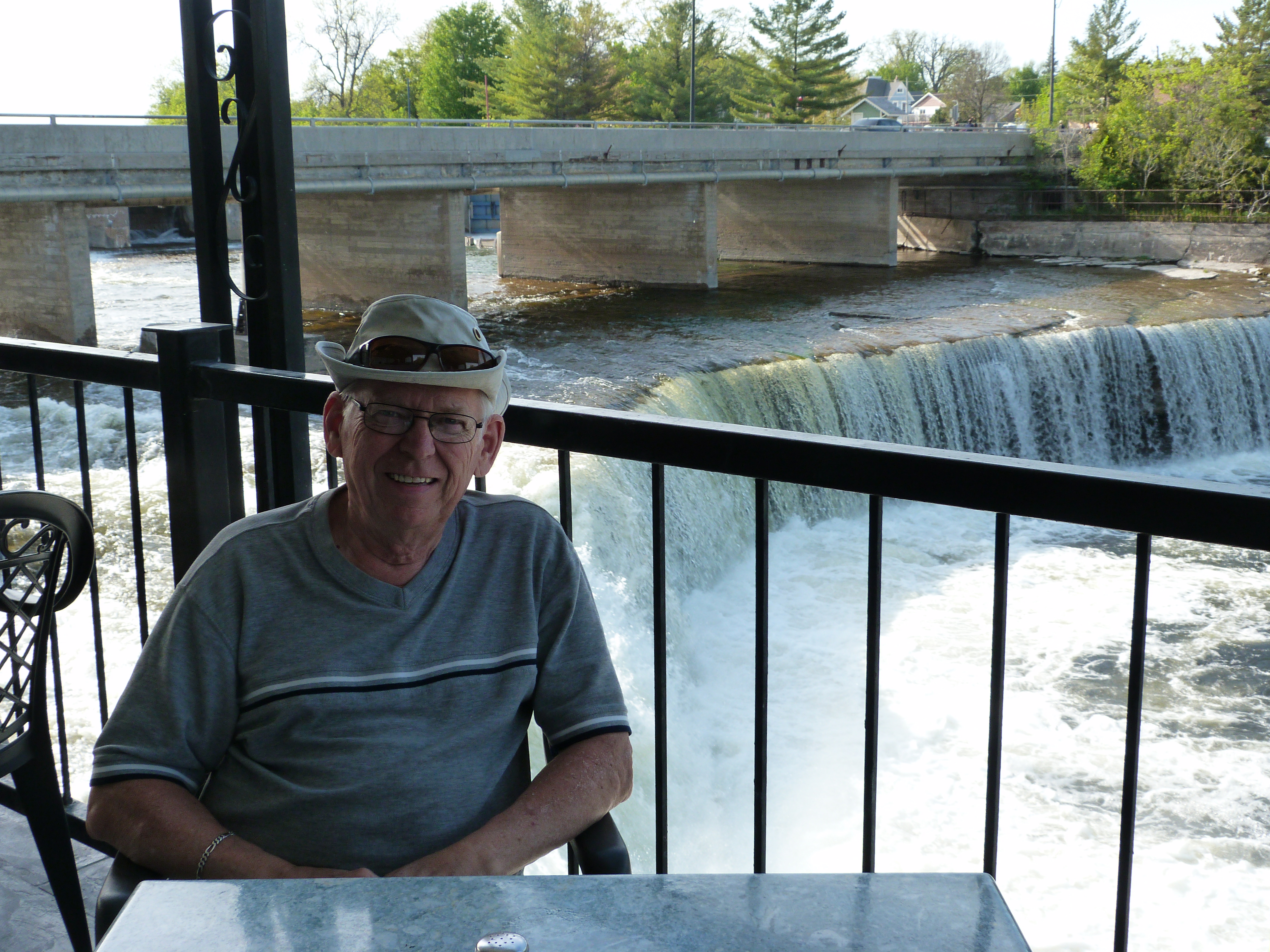 The driver side windshield wiper wasn’t hitting where it should, so when we reached Cobourg, twenty-five kilometers down the road, Jim felt he needed to purchase a new blade and install it. We were barely out on the highway again when I heard a thump and looked back to see the fridge door swinging open! That had happened once on our way home in the spring, but it was on a very bumpy road and it was forgotten about. Unlike the dual refrigerators meant for RVs, our newer house model didn’t come with any sort of locking system other than the suction seal. I managed to find some pieces of Velcro and secure it. An hour or so later, Jim was in need of coffee so we made a quick stop and got going in earnest.