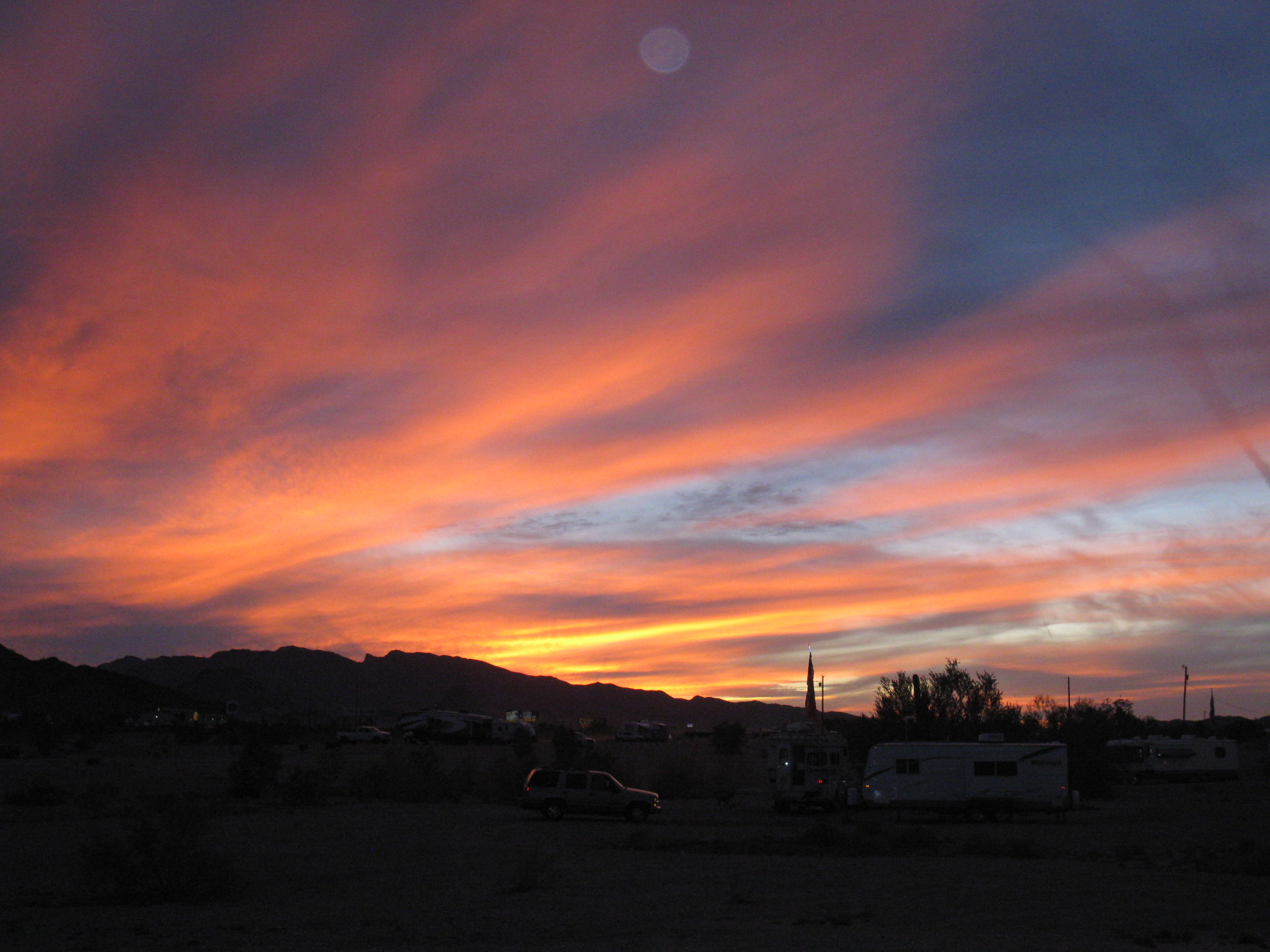 The rain had stopped somewhere along the way, but we hadn’t really noticed. It was a beautiful sunset, but then the temperature tumbled. We had a visit with Marjorie and Dave and then crawled into our cold bed. Jim discovered he’d forgotten the extension cord that he uses for his CPAP, so had to improvise. Last year, if the batteries were well charged before we went to bed, the inverter would keep them running for the night. But, of course, that wasn’t to be that night. Jim had to get up twice to turn on the generator. It was a long and stressful night.